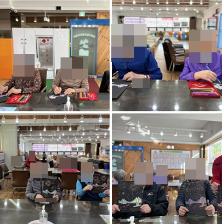 어르신들은 각자의 개성에 맞게 광안대교를 색칠해주고 울긋불긋 불꽃도 예쁘게 표현을 잘 해주셨습니다.