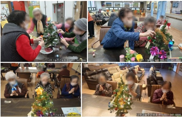 완성된 장식을 트리에 달아보며 크리스마스 노래도 함께 불러보고 어르신들은 환하게 웃으며 즐겁게 참여해주셨습니다.