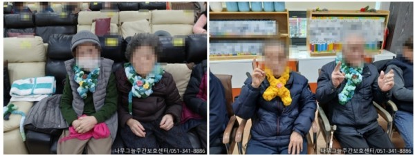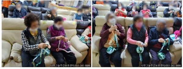어르신들과 따뜻한 겨울을 보내기 위해 핑거 목도리 뜨기 시간을 가져보았습니다.