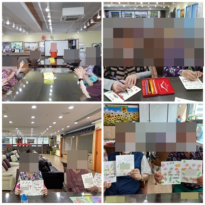 오늘 우리 어르신들은 예쁜글귀와 도장 덕분에 기분이 밝아 진다 하시며 즐겁게 프로그램에 참여 하셨습니다.