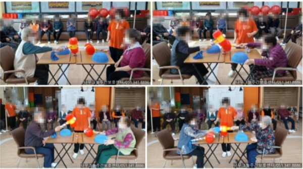 활기찬 분위기 속에서 어르신 두 분이 마주 앉아 ‘가위바위보’ 게임으로 뿅망치 활동을 진행해 보았습니다.