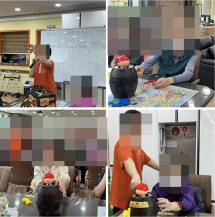 한번씩 생각하고 꽂는 것을 통해 사고력 발달에도 효과가 있습니다. 우리 어르신들은 조심스러운 손길으로 통에 칼을 꽂아 주셨습니다.