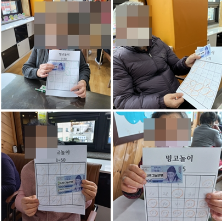 동그라미해야 외칠 수 있는 완빙고로 이루어집니다. 이 프로그램은 어르신들께서 숫자를 빙고종이에