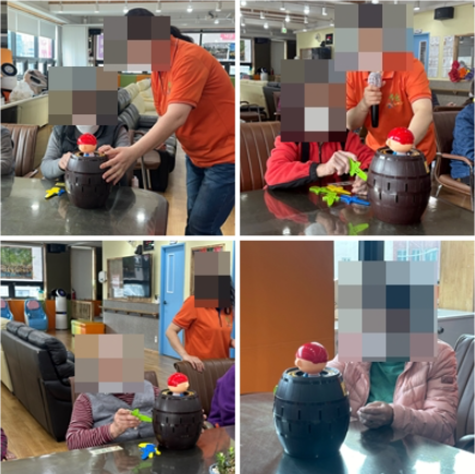 오늘 소개해드릴 인지교구 프로그램은 해적룰렛 게임입니다. 이 게임은 통 안쪽 가운데에 해적 모형을 넣어둔 뒤 순서대로