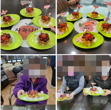 완성된 예쁜 케이크에 소원을 작성한 픽을 꽂아 어르신들만의 소원케이크를 만들어보았습니다.