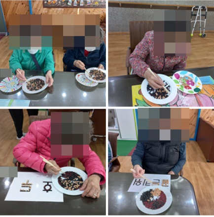 모양을 따라 집중해서 콩을 옮겨보았습니다. 이 수업은 콩이 놓이는 위치나 방향에 따라 콩을 집을 다양한