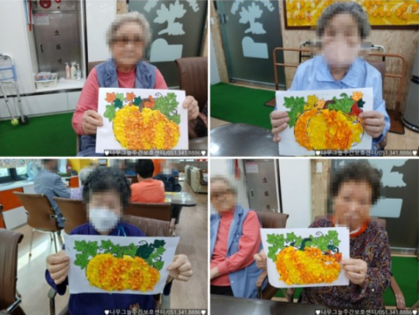 가을 제철 호박으로 어르신들과 미술 활동을 즐겨보았습니다.