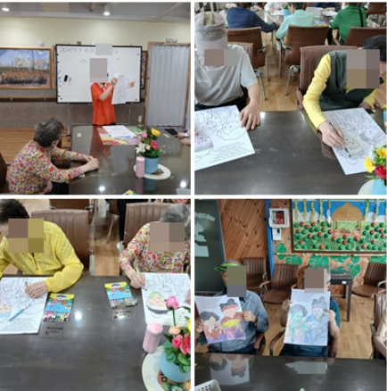 오늘 색칠할 장면은 흥부가 제비의 다리를 치료해주는 장면으로 어르신들은 집중하시며 멋지게 완성해 보았습니다.