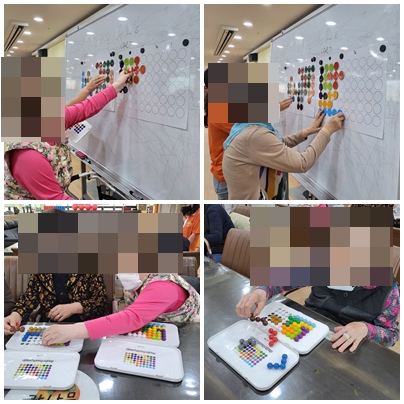 아이들이 퍼즐을 맞춰가며 즐거워하듯 구슬퍼즐에 푹 빠져 즐거운 시간을 보내셨습니다.