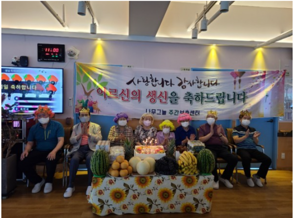 9월 생신잔치 페이지 정보 작성자 관리자 작성일21-09-13 23:49 조회49회 댓글0건 관련링크 이전글 목록 답변 본문 매월 첫째주 금요일에 생신잔치 프로그램이 진행되며 전직원과 어르신들이 다같이 축하를 해드리고 있습니다. 댓글목록 등록된 댓글이 없습니다. 이전글 목록 답변