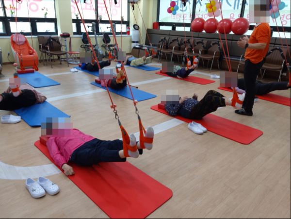나무그늘에는 재활치료 프로그램으로 슬링운동을 실행하고 있습니다.