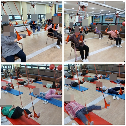 마르페 재활운동기구를 활용해 어르신들과 함께 슬링운동을 진행하였습니다.